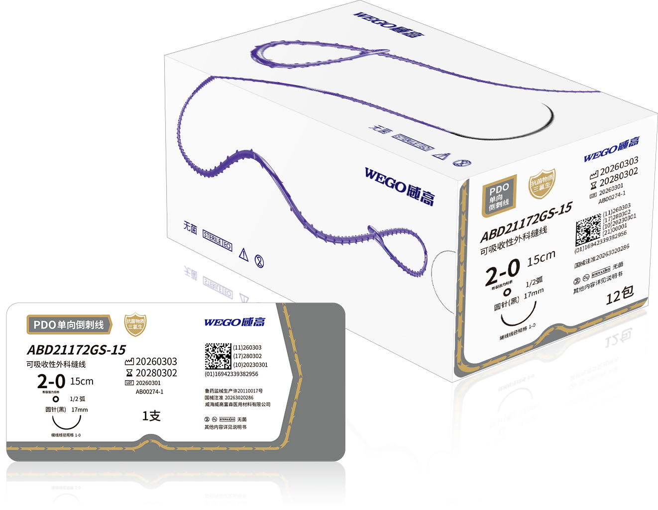 可吸收性外科缝线(抗菌倒刺PDO)